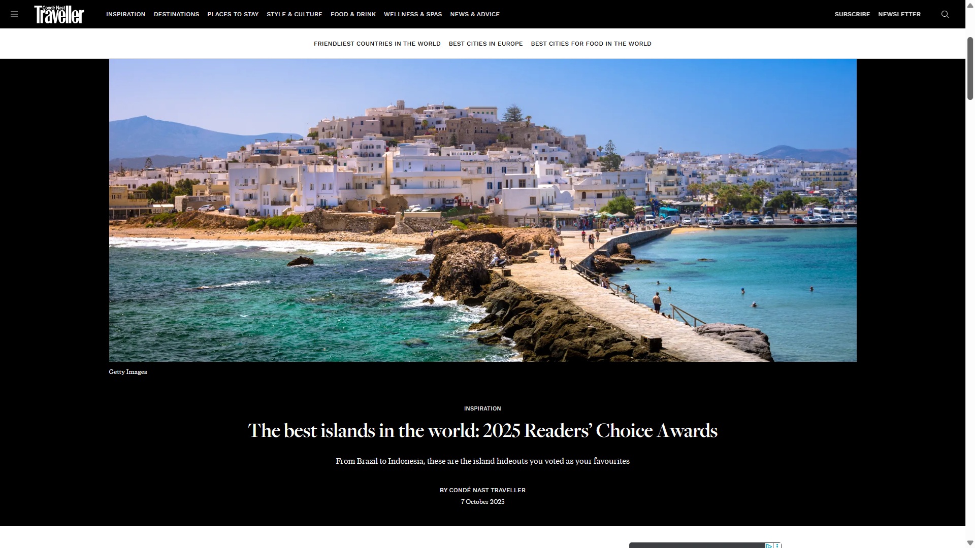 Ως το καλύτερο νησί της Ευρώπης για το 2025 ψηφίστηκε η Νάξος από το αναγνωστικό κοινό του έγκυρου βρετανικού περιοδικού Condé Nast Traveller